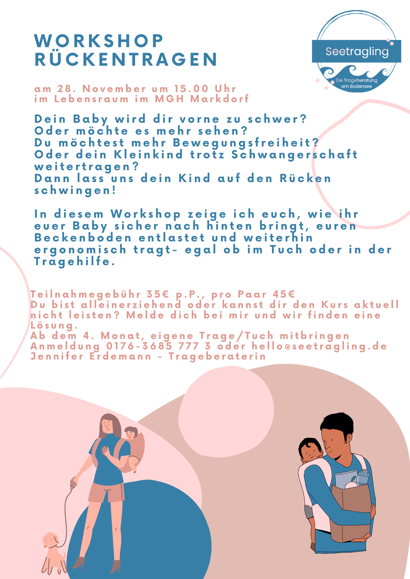Eingeladen ist jeder der Interesse am Tragen hat, gerne an der frischen Luft ist, den Austausch sucht, neue Mamas kennenlernen möchte, egal ob schwanger oder bereits Eltern. Geschwisterkinder dürfen gerne mitkommen.